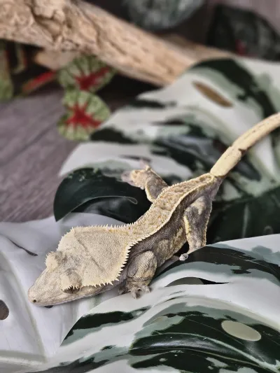 Caring for Gwyneth is refreshingly easy: a simple mist, her prepared diet, and a cozy enclosure are all she needs to thrive. With her calm demeanor and striking colors, she’s a wonderful choice for anyone wanting a gecko that’s both beautiful and easy to enjoy.